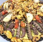 Charcoal grilled marinated beef shish, chicken, and kefta kababs or Shawarma. with