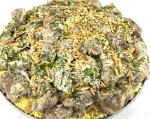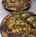 Roasted lamb Served Over Sautéed Ground Beef, Peas & Carrots Over Seasoned Rice. Choice of 2 Sides: Hummus, and Arabic or Jerusalem salad