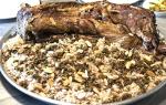 REQUIRE 24 HOURS ADVANCE ORDER - Oven Roasted Leg of Lamb marinated and stuffed with seasoned rice. Served with Arabic and Cucumber salads.